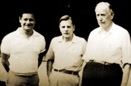Genauso wie die bereits in Teil 4 erwähnte Gerda Boysen („Biodynamik“) war Navarro „Schüler“ des Orgontherapeuten und Psychologen Dr. Ola Raknes. Raknes war der älteste und treuste Schüler Reichs und einer der wenigen, mit denen Reich auch eine engere persönliche Beziehung eingegangen ist. Später war Raknes Fellow des American College of Orgonomy. Hier sieht man ihn rechts, neben ihm Elsworth Baker und links Paul Mathews Mitte der 1960er Jahre:
