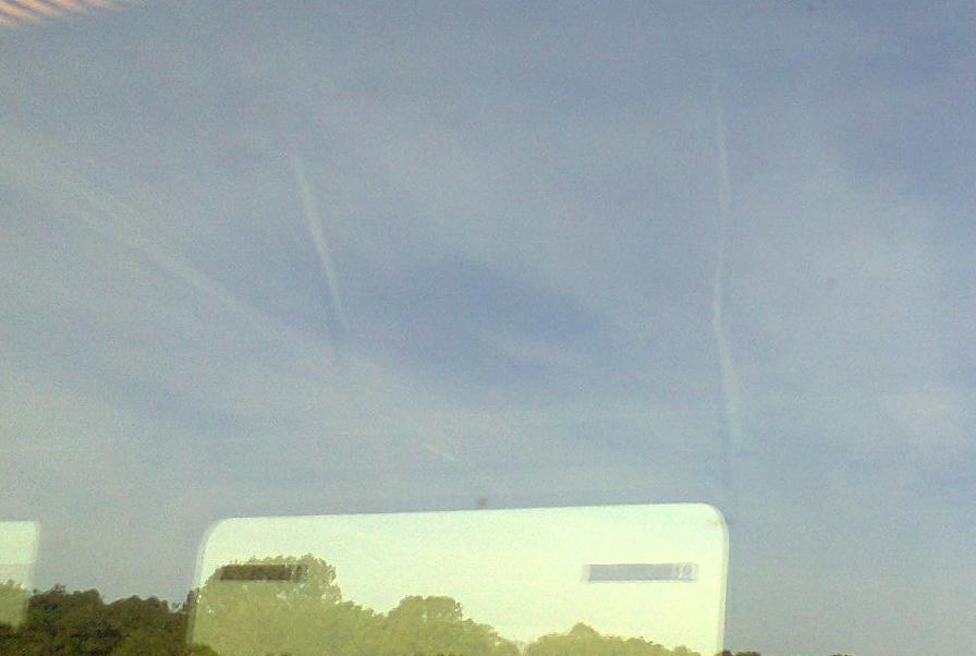 Der amerikanische Arzt Max Bloom hat zweimal am morgendlichen Himmel seltsame linealgerade dunkle Streifen beobachtet, wobei einer zusammen mit einem welligen Kondensstreifen auftrat, der verwehte und sich auflöste, während die schnurgerade Linie bestand hatte. Durch diesen Bericht sensibilisiert habe auch ich Anfang 1985 in Schleswig-Holstein, erneut etwa ein Jahrzehnt später in Hamburg und dann wieder 2004 in Westfalen, jeweils am frühen oder späten Nachmittag solche subtilen aber nichtsdestoweniger unzweideutig mathematisch perfekten und zweifellos artifiziellen dunklen Streifen gesehen, die übrigblieben, als die verwirbelten Kondensstreifen langsam verwehten und sich auflösten.