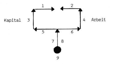 • In der Entsprechung des „psychophysischen Parallelismus“ laufen Kapital und Arbeit (3 + 4) unabhängig nebeneinander her: so sieht es größtenteils in den westlichen Demokratien aus.
