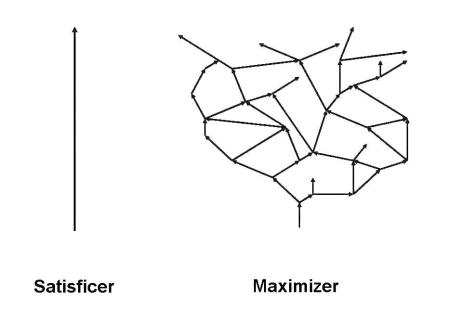 Psychologen unterscheiden zwischen „Maximizers“, die selbst bei kleinsten Entscheidungen, sich nur schwer zu einem Entschluß durchringen können, auf der einen und „Satisficers“, die unmittelbar zu einer Entscheidung finden, auf der anderen Seite.